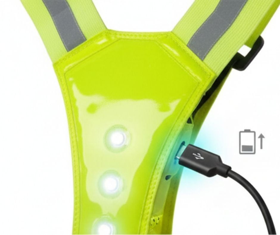 Met het BrightRunner LED-veiligheidsvest ben je tot 100 meter zichtbaar, zelfs op donkere wegen, regenachtige avonden en routes zonder straatverlichting.